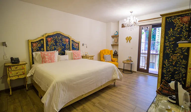 Amplia y confortable suite para 1-2 personas con cama King Size, baño muy amplio, ropero y terraza. Muebles pintados a mano. Ideal para tener una escapada romántica en pareja.