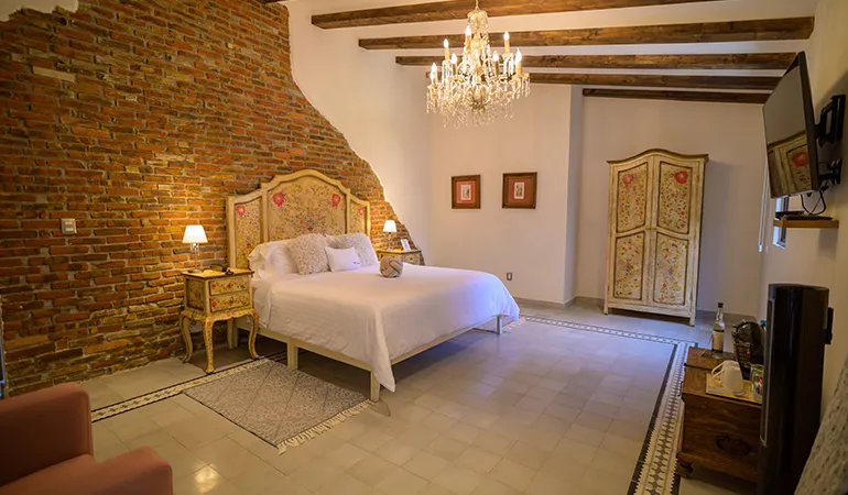 Amplia y confortable suite para 2 personas con cama King Size, baño completo, closet y amplia terraza, ideal para tener una escapada romántica.